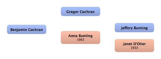 | 3rd cousin twice removed up (m) | 14/08/1914 | 29/04/1999 | Atlanta, Georgia, USA | ||