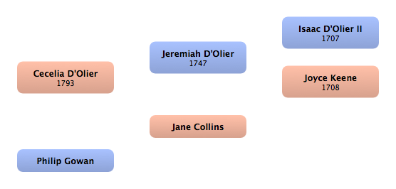 | Grandmother | 1708 | Dublin, Ireland | 1780 | Dublin, Ireland | |