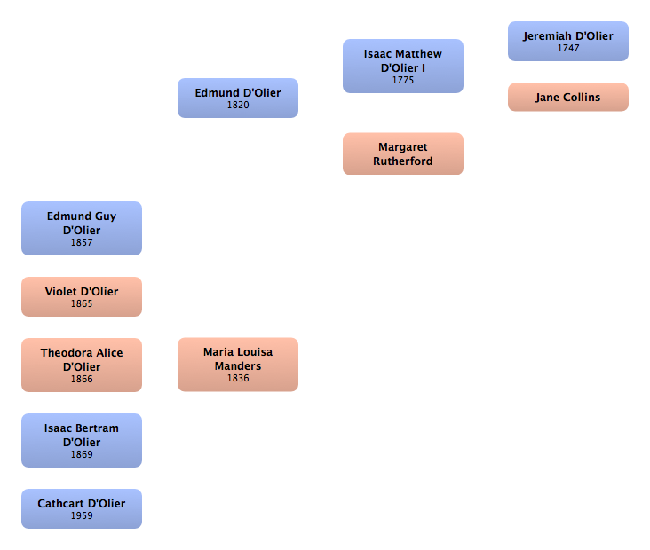 | Great grandfather | 1707 | Dublin, Ireland | 1779 | Dublin, Ireland | |